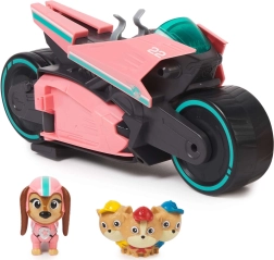 Ga op reddingsmissie met heldin Liberty en haar roze-zwarte motor geïnspireerd op de film PAW Patrol: The Mighty Movie. Met een druk op de knop transformeert het voertuig – er ontstaat ruimte voor kleine helpers die veilig kunnen meerijden in de zijspan. Robuuste wielen zorgen voor soepel push-and-go rijden en de duurzame constructie kan intensief kinderspel aan.