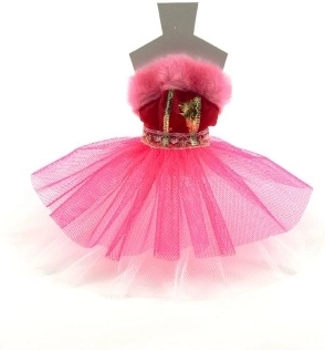 Inhoud verpakking: jurk in een stijlvolle zak met afmetingen 27x30 cm. Ideaal cadeau voor elke kleine prinses die graag creatief is en haar pop aankleedt.