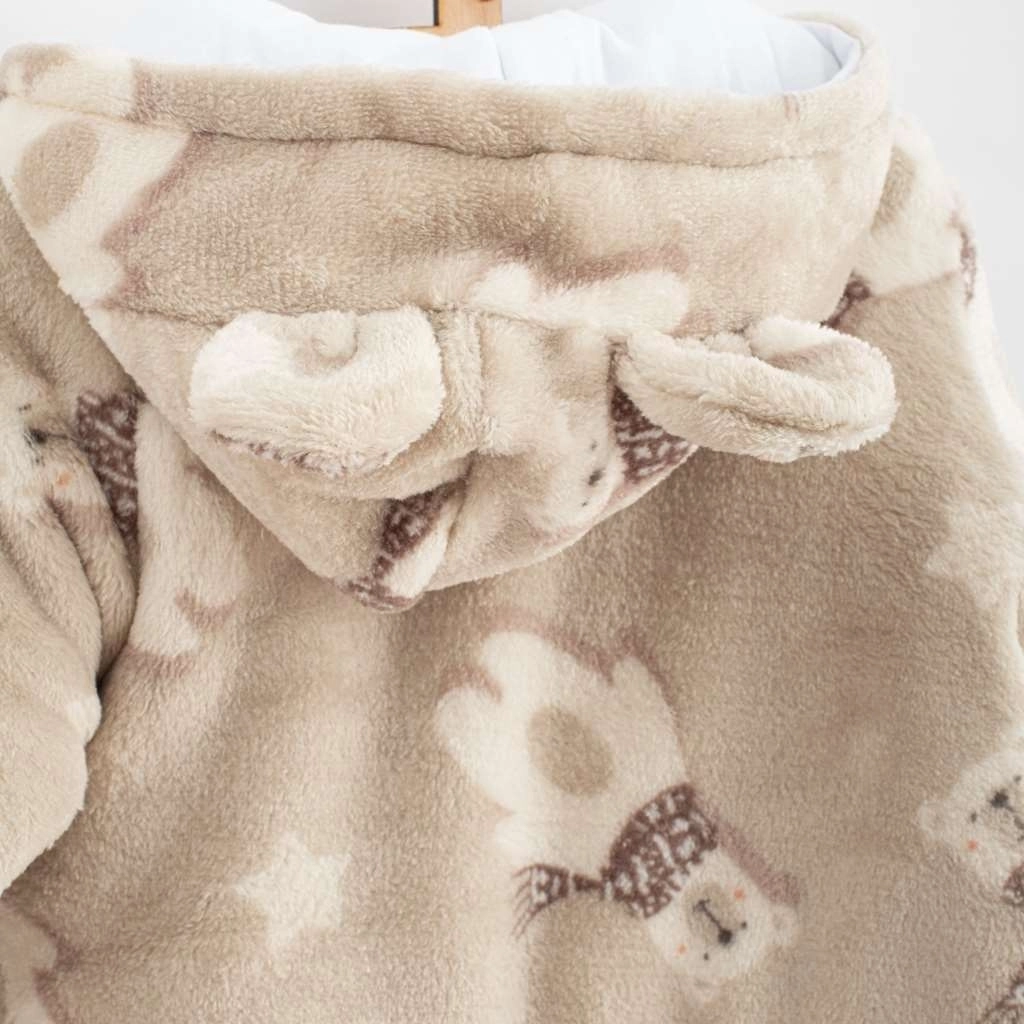 Een superzachte winteronesie met capuchon en oortjes, New Baby Polar Bear, houdt je baby warm en comfortabel. Gemaakt van warm Wellsoft-materiaal, met een anti-allergische vulling, katoenen voering en praktische sluiting met twee ritsen over de volledige lengte.