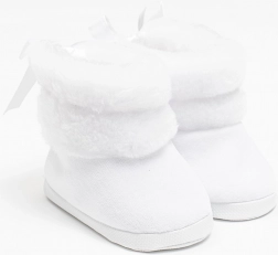 De laarsjes hebben een ruime binnenzijde, zodat de teentjes vrij kunnen bewegen en de spieren zich natuurlijk kunnen ontwikkelen. De dunne synthetische zool is zeer licht, waardoor de schoentjes prettig dragen – ze zijn echter uitsluitend bedoeld als gevoerde slofjes voor in de kinderwagen of thuis, niet om mee te lopen.