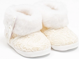 Verwen de voetjes van je baby met stijlvolle winterlaarsjes NEW BABY met delicate kant. De voering van fleecestof zorgt voor aangename warmte en zachtheid, terwijl de brede binnenruimte natuurlijke teenbeweging en spierontwikkeling mogelijk maakt. Dankzij de klittenbandsluiting zijn de laarsjes makkelijk aan te trekken en blijven ze goed aan het voetje zitten.