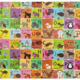 Eén zijde met een vrolijk alfabet en dieren, de andere met een getekend stadje en wegen. Kinderen oefenen letters en hun verbeelding met autootjes.