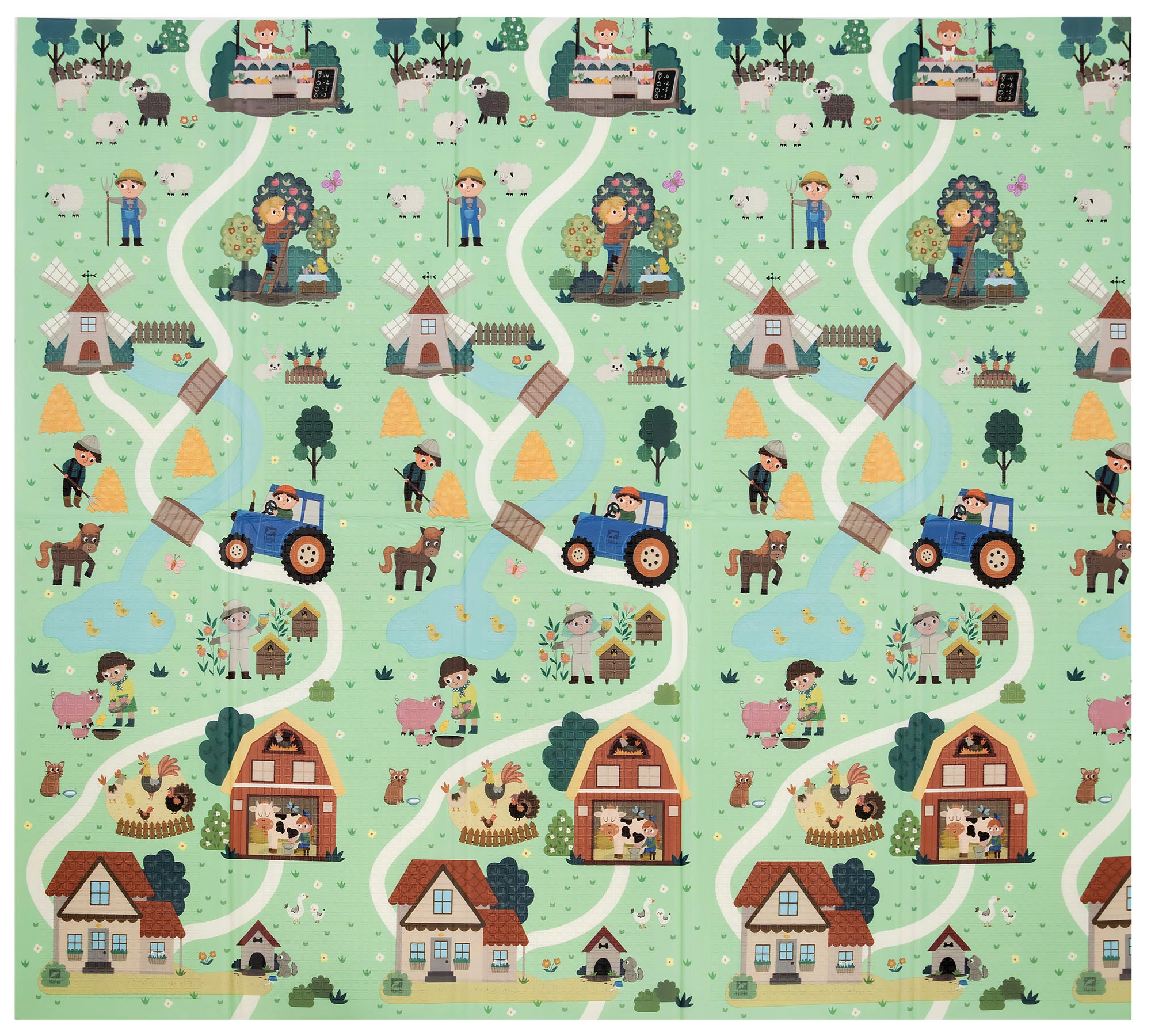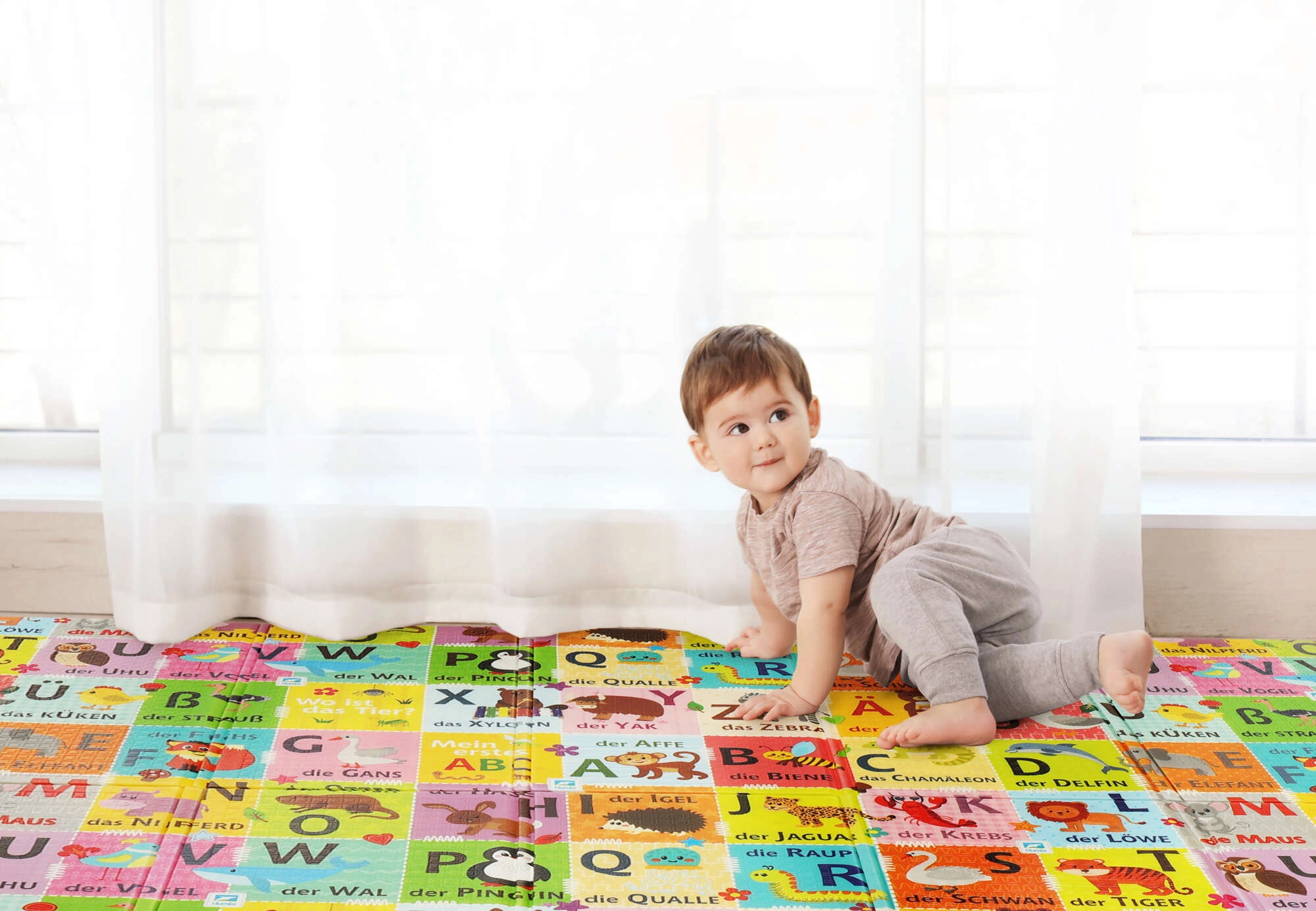 Grote, zachte en dubbelzijdige mat van XPE-schuim biedt kinderen comfort en veiligheid bij spelen, kruipen en de eerste stapjes. Hij is opvouwbaar, waterdicht, makkelijk te reinigen en dankzij de meegeleverde draagtas neem je hem overal mee naartoe – naar de kinderkamer, woonkamer of de tuin. Voldoet aan de Europese veiligheidsnormen en bevat geen schadelijke stoffen.