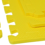 De HUMBI-schuimpuzzel creëert een veelzijdig speeloppervlak in gedempte tinten geel, grijs en zwart. De tegels passen nauwkeurig in elkaar, zodat u snel een veilige speelplek op elke harde vloer legt. Dankzij de dikte van 1 cm isoleert de mat tegen kou en dempt valpartijen, ideaal bij de eerste pogingen tot zitten, kruipen en lopen.