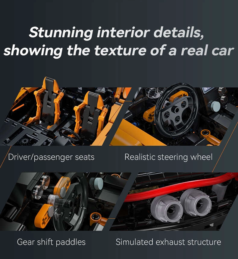 Dit grote model uit de CaDA Master-serie zal elke liefhebber van technische bouwsets bekoren. De supercar Assassin XR, ontworpen door Pvdb, schittert met een nauwkeurig vormgegeven carrosserie in oranje met zwarte accenten en indrukwekkende details – van de cockpit met twee zitplaatsen en stuur tot de stijlvolle uitlaten en realistische proporties.