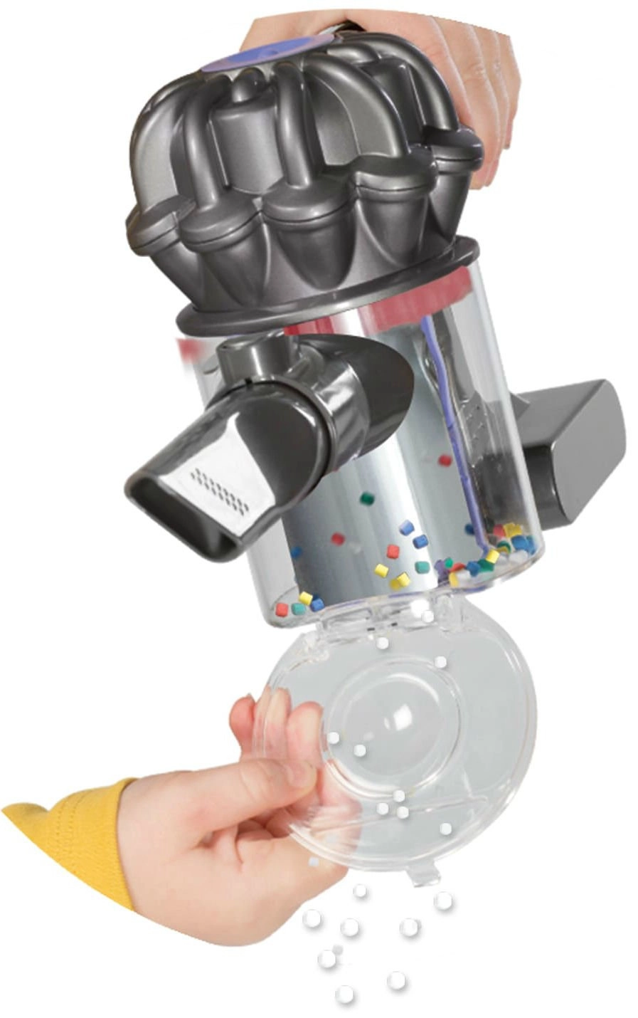 Stijlvolle kinderstofzuiger geïnspireerd op het iconische DYSON-design van het merk CASDON biedt kinderen veel plezier bij het nadoen van het schoonmaken. Heeft een doorzichtige opvangbak met gekleurde balletjes en realistische accessoires voor schoonmaakspel. Ideaal voor het ontwikkelen van fantasie en gewoontes rond huishoudelijke taken. Dit exemplaar is vooral bedoeld als spelelement: de oranje buis ontbreekt, de afsluiting van de opvangbak kan ontbreken, vertoont gebruikssporen en werkt niet. Zonder originele doos.