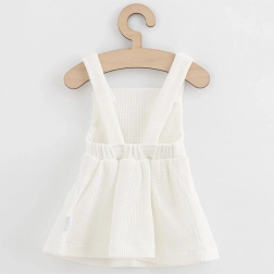 Ontdek de elegante en comfortabele tuinjurk NEW BABY Laura in het wit, met een fijne gebreide structuur en hoogwaardige afwerking. Zuivere katoen is ademend, zacht voor de kinderhuid en behoudt uitstekend zijn vorm.
