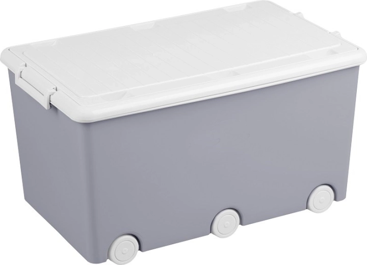 Breng snel en eenvoudig orde in de kinderkamer met de ruime TEGA speelgoedbox op wieltjes in grijs. Biedt een inhoud van 60 l, afmetingen 57 × 36 × 29 cm en 6 wieltjes voor comfortabel verplaatsen. Dankzij de zijklep met 2 drukknoopsluitingen zijn speelgoed en spulletjes veilig opgeborgen en de stapelbare mogelijkheid bespaart ruimte. Gemaakt van hoogwaardig, gecertificeerd kunststof voor een lange levensduur.