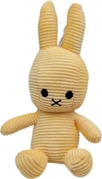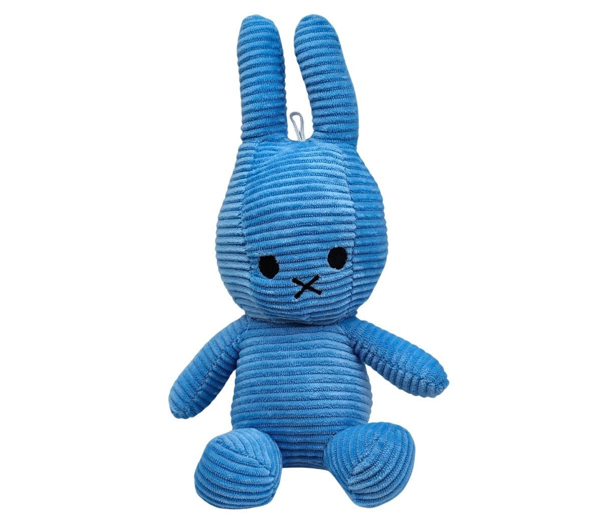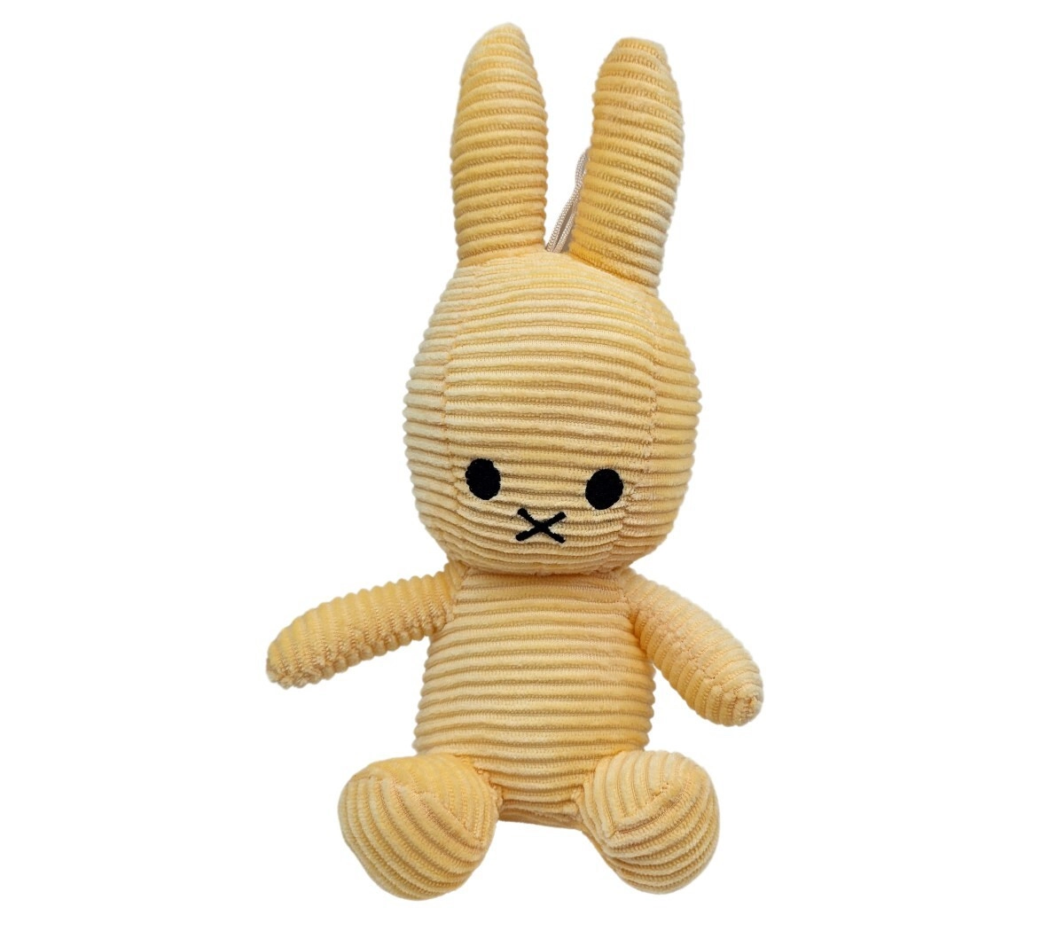 Het konijntje is gemaakt van een zachte geribde stof die prettig aanvoelt en uitnodigt tot knuffelen en zintuiglijke verkenning.