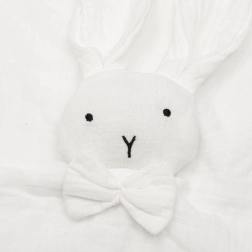 Het witte mousseline knuffeldoekje NEW BABY Rabbit is een zacht troostdoekje dat je baby helpt te kalmeren, zich veilig te voelen en beter in slaap te vallen. De lichte en ademende mousselinestof van biologische katoen is zacht voor de gevoelige babyhuid en zorgt voor een aangenaam gevoel.