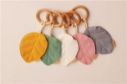 De New Baby Leaf bijtring in grijs is ontworpen om je baby veilig en comfortabel te laten kauwen en tegelijk het tandvlees te kalmeren. De houten ring van beukenhout is glad en duurzaam, de mousseline doek van biologische katoen is zacht, ademend en prettig aanvoelend.