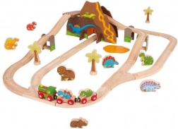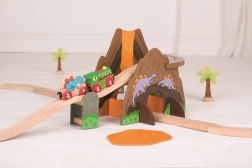 Beleef prehistorische avonturen met een treinbaan waar spoorwegen dinosaurussen ontmoeten. Kinderen bouwen een circuit rond de vulkaan met tunnel, rijden met de dinosaurustrein en creëren hun eigen verhalen met de kleurrijke figuren. De houten onderdelen zijn robuust, prettig om aan te raken en ideaal voor dagelijks spelen.