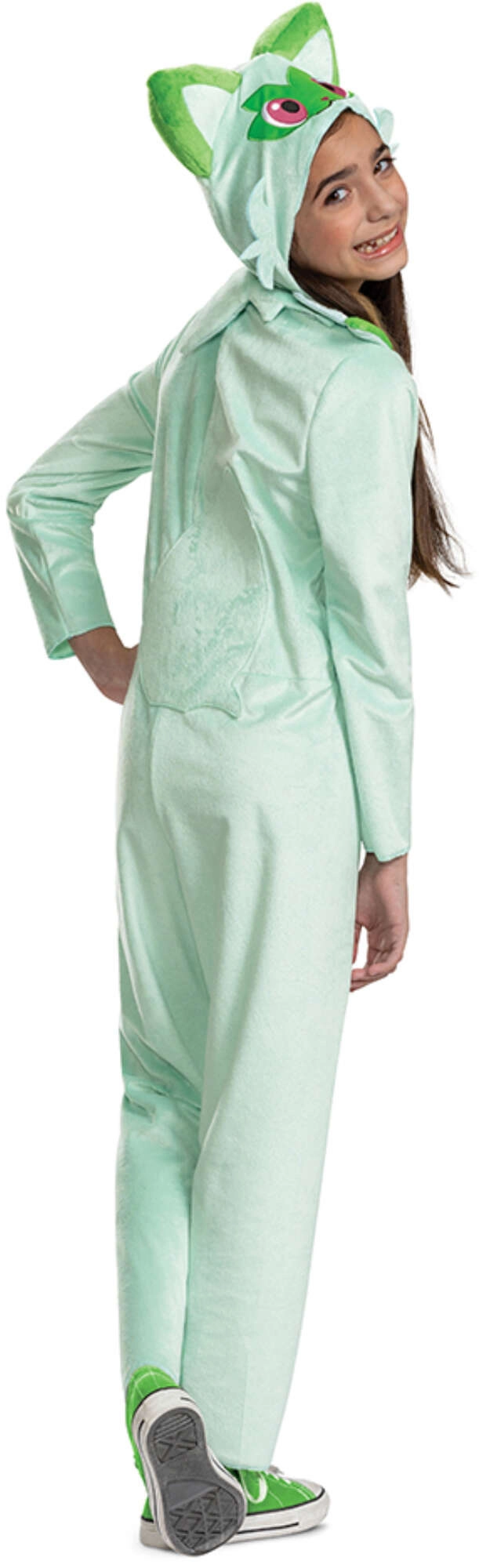 De geïntegreerde capuchon met grote oren, ogen en bladkraag bootst het uiterlijk van Sprigatito natuurgetrouw na en voegt een betoverend detail toe aan het kostuum.