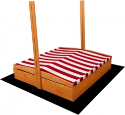 Geniet van zorgeloos buitenspelen. Dit zonnescherm voor een zandbak van 120 × 120 cm combineert een robuuste houten constructie met een hoogwaardig doek in rood-wit gestreept patroon. Het biedt schaduw en bescherming tegen lichte regen en kan bovendien tot aan de rand worden neergelaten, zodat de zandbak schoon en beschermd blijft.