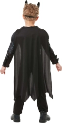De aangehechte cape en gevormd masker laten kinderen direct in de rol van de duistere ridder kruipen.
