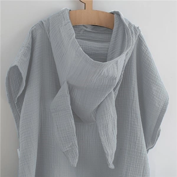 Stijlvolle mousseline poncho voor kinderen, perfect voor thuis, bij het zwembad en aan zee. Door de lichte, dubbellaagse mousselinestof van 100% katoen is de poncho luchtig, absorberend en sneldrogend. De capuchon met oortjes geeft een schattige look en beschermt tegelijk nat haar tegen tocht.