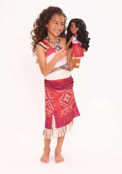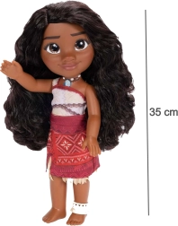 De MOANA pop, geïnspireerd door Disney’s MOANA 2, brengt kinderen de authentieke look van de geliefde heldin: lang, vol haar om te stylen, expressieve donkere ogen en een traditionele Polynesische outfit – een lichte top met rode patronen en een rode rok met tropische print. Een schelpenketting benadrukt haar band met de oceaan.