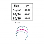De praktische klep creëert schaduw en beschermt de ogen en het gevoelige gezichtje tegen felle zonnestralen. De doordachte vorm over de oortjes en de vetersluiting zorgen voor stabiel en comfortabel dragen zonder afglijden. De certificering OEKO-TEX STANDARD 100 bevestigt de onschadelijkheid van de gebruikte materialen.
