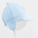 Licht en ademend kinderpetje met klep NEW BABY Casually Dressed in blauwe kleur beschermt betrouwbaar tegen de zon. 100% katoen is prettig voor de gevoelige huid, de klep schermt gezicht en ogen en de vorm over de oortjes met veterstrik zorgt dat het petje goed blijft zitten en niet knelt. Certificering OEKO-TEX STANDARD 100 garandeert veilige materialen.