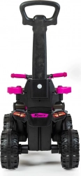 Het robuuste chassis en de brede wielen zorgen voor zekerheid op diverse ondergronden en comfortabel bedienen met kleine handjes.