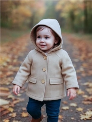 Stijlvolle en praktische kinderjas New Baby UNI met capuchon voor jongens en meisjes. Biedt betrouwbare bescherming tegen wind, is comfortabel gevoerd met katoen en oogt elegant dankzij houten knopen. Universele snit van een stevigere kwaliteitsstof, geschikt voor de herfst en milde winter.