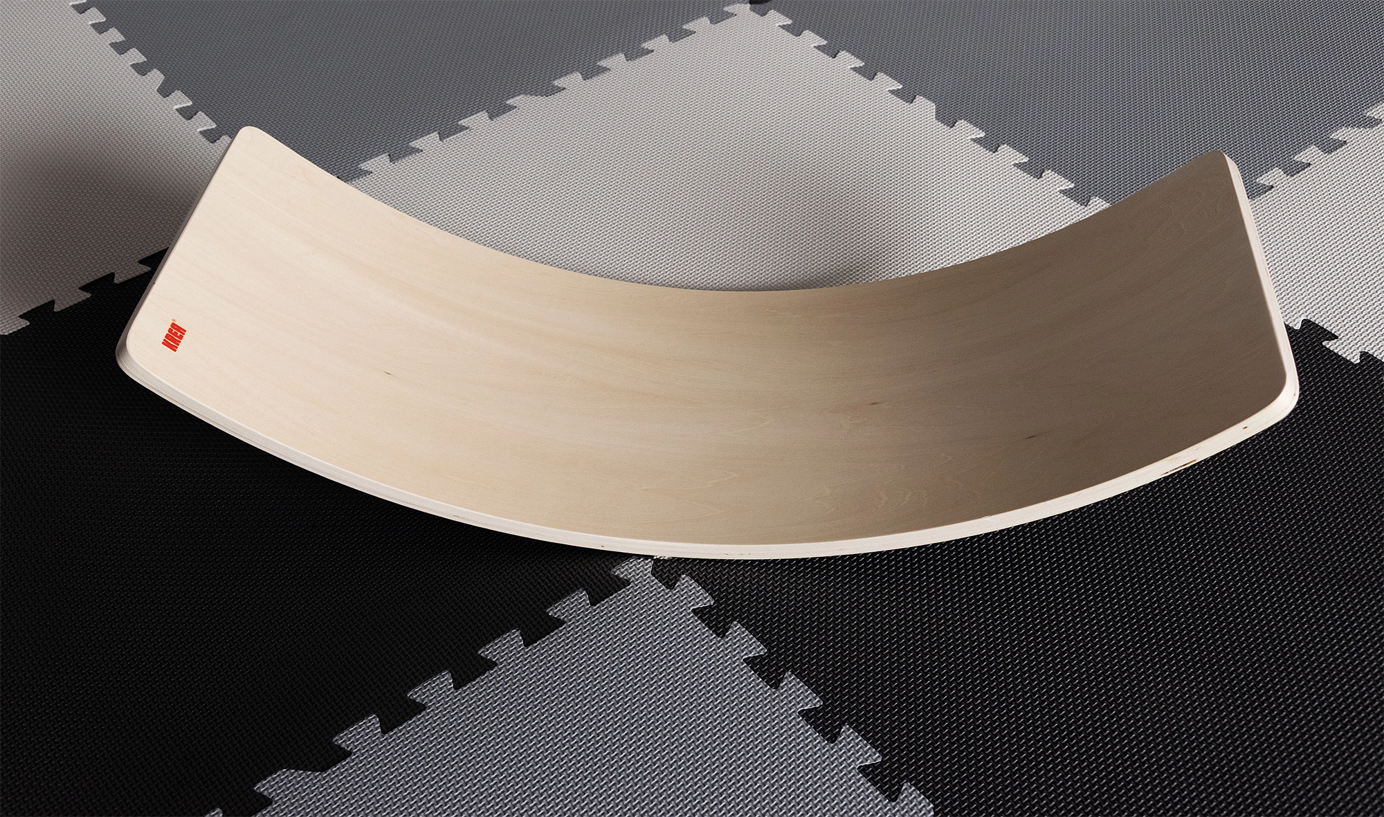 De plank van duurzaam berkenmultiplex met een licht gebogen vorm biedt zekerheid bij staan en schommelen. De gladde afwerking en afgeronde randen zijn vriendelijk voor kinderhanden en -voeten.