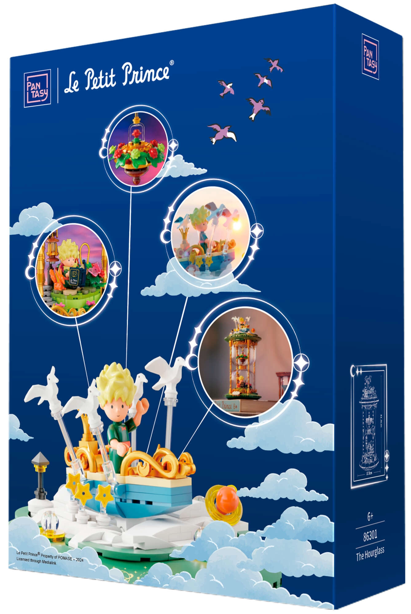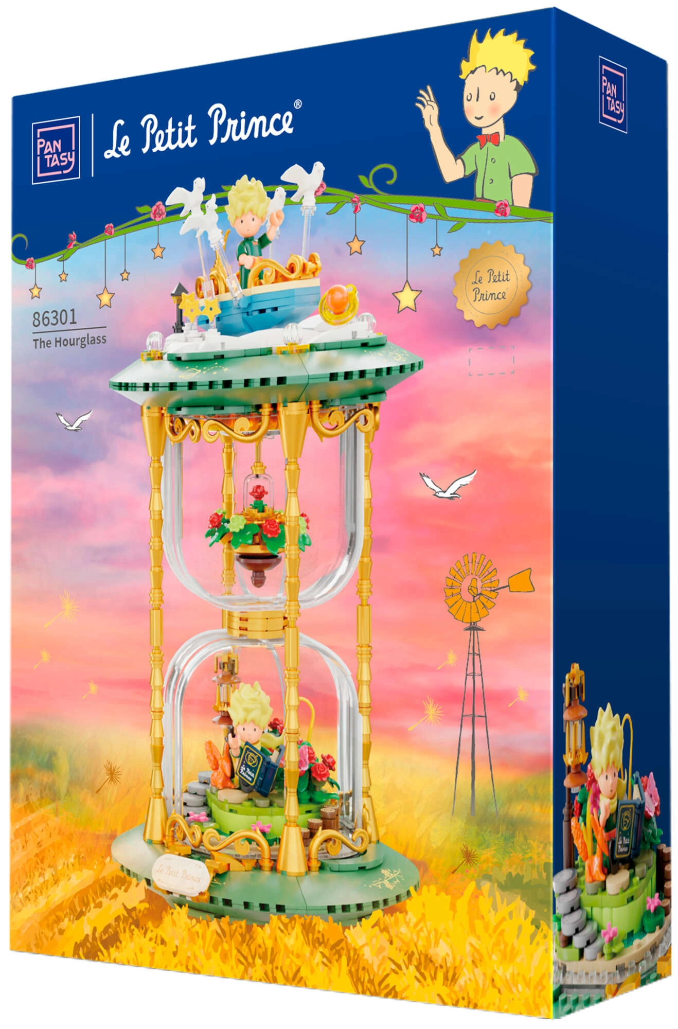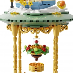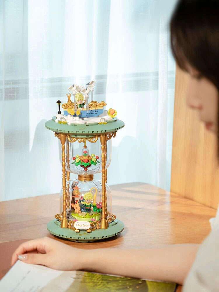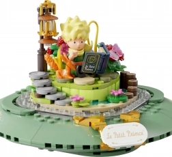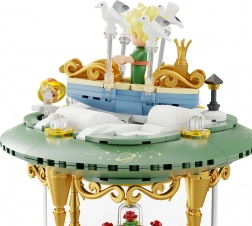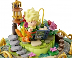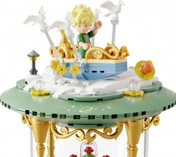 Deze tentoonstellingsbouwset in de vorm van een stijlvolle zandloper verbindt de poëzie van een tijdloos werk met modern design. Groene sokkels, gouden zuilen en transparante kamers met mini-scenes creëren een indrukwekkend diorama – De Kleine Prins, de vos, de roos onder een glazen koepel en de sterrenhemel. Dankzij de nauwkeurige passing van de stenen en de bedrukte patronen behoudt het model jarenlang zijn strakke uitstraling.