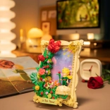 Bouw een indrukwekkende bloemscène met een roos en subtiele details in een lijst. Het afgewerkte model staat stevig en is een opvallende interieurdecoratie.