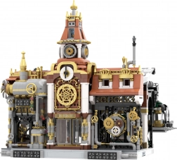 Stap in de sfeer van het stoomtijdperk. Dit gedetailleerde steampunk treinstation combineert messing- en bronstinten met industriële accenten en brengt het authentieke karakter van stoommachines tot leven. Precisieontworpen tandwieloverbrengingen, leidingen en geveldecor maken dit model een opvallend pronkstuk in elke collectie en elk interieur.