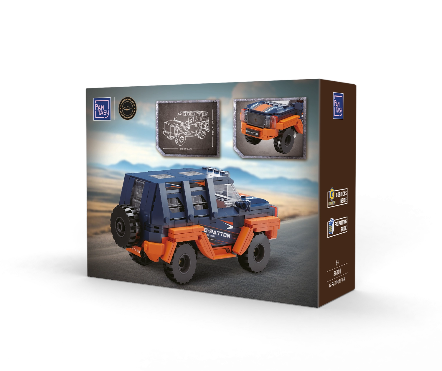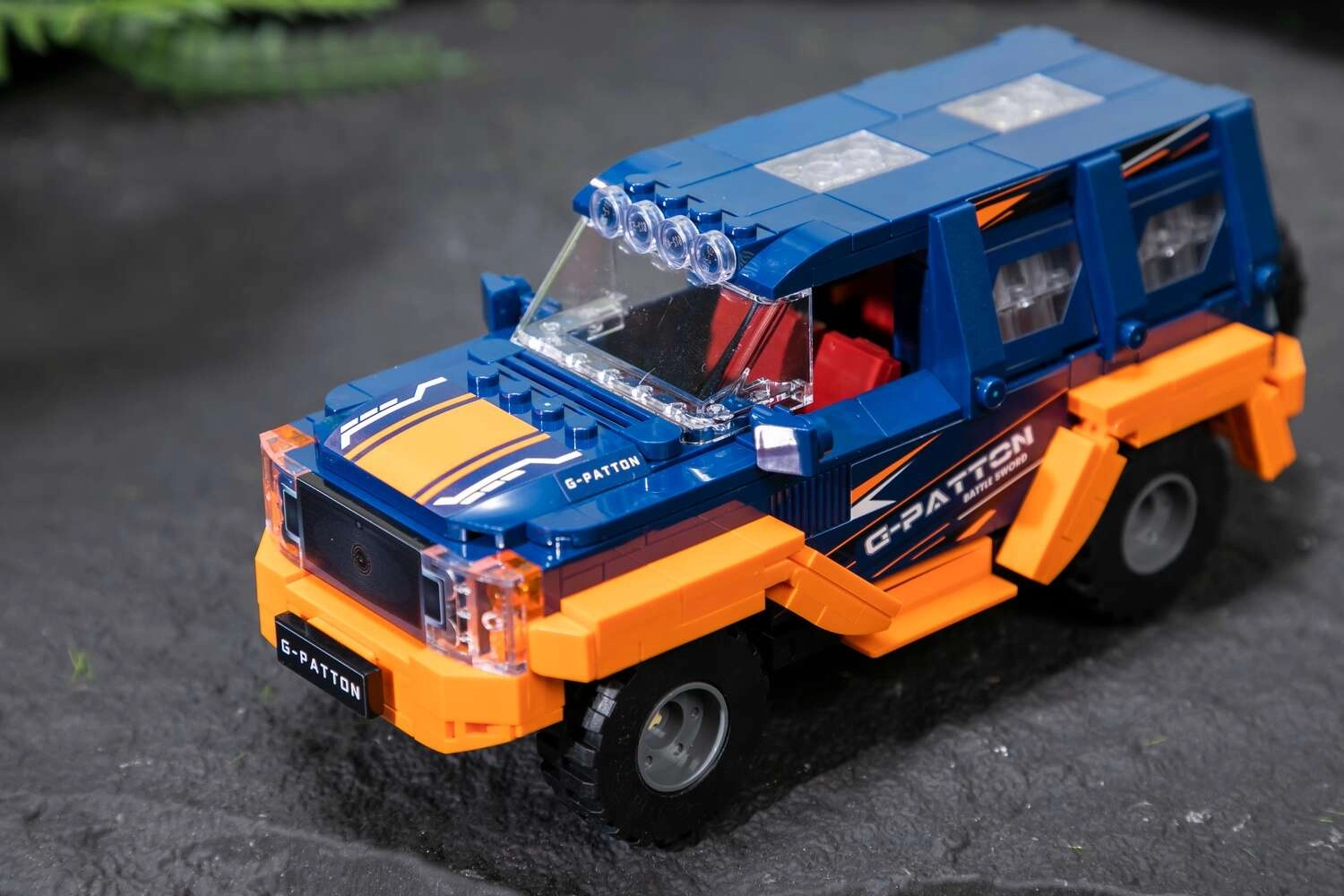 Beleef bouwplezier met de PANTASY G‑Patton GX bouwset. De robuuste terrein‑SUV valt op door het blauw‑oranje ontwerp, transparante ramen, een gedetailleerde grille en lampen op het dak. Onderdelen van hoogwaardige ABS klikken stevig vast en de bedrukte decoraties blijven langdurig mooi – geen bubbels of loslatende stickers.