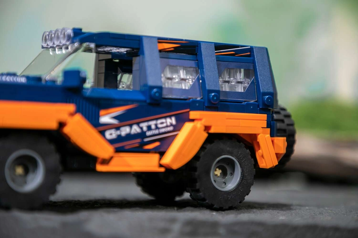 Een gedetailleerd rooster, brede spatborden, transparante koplampdelen en daklampen geven de G‑Patton GX een authentieke offroad‑look die op de plank in het oog springt.
