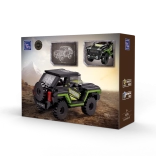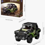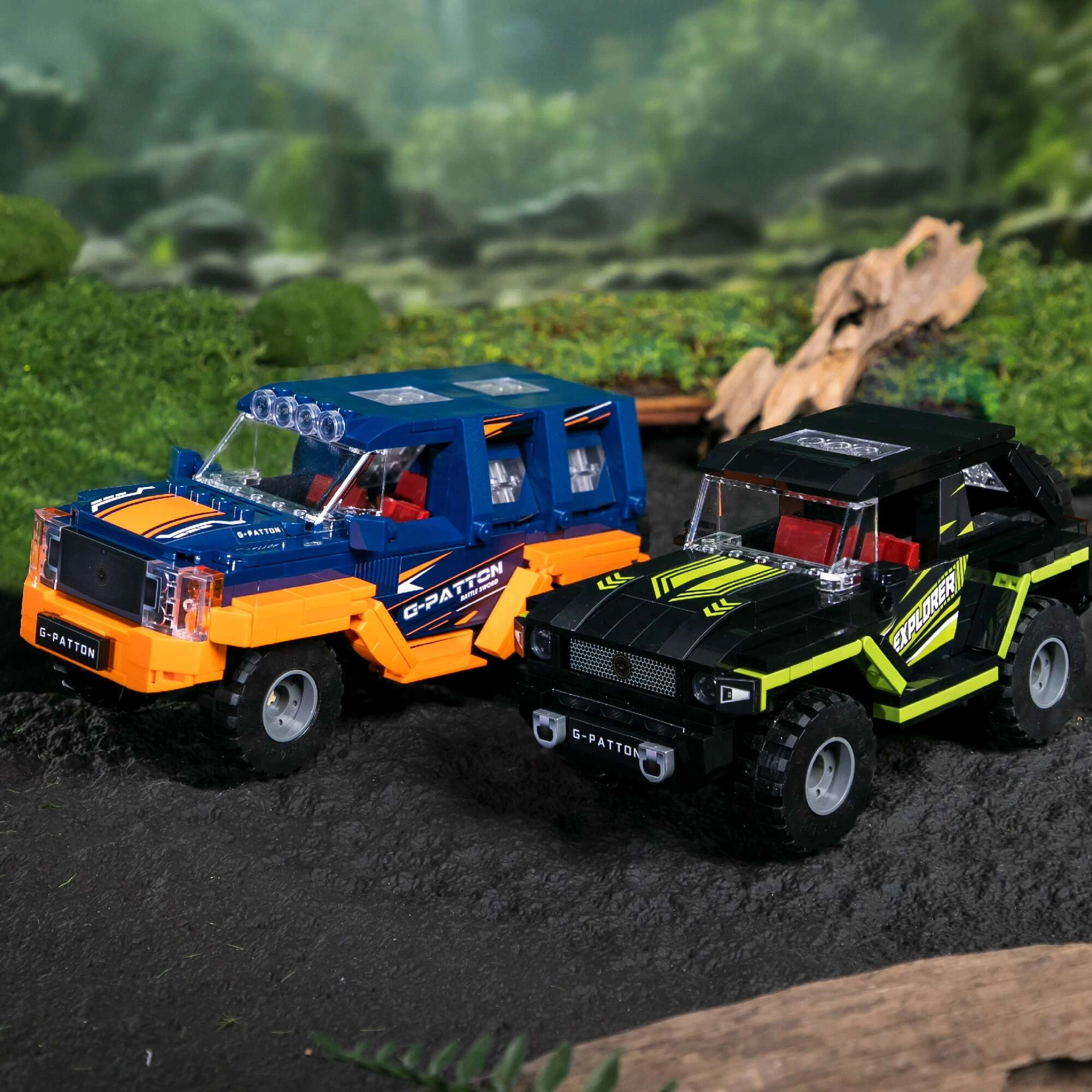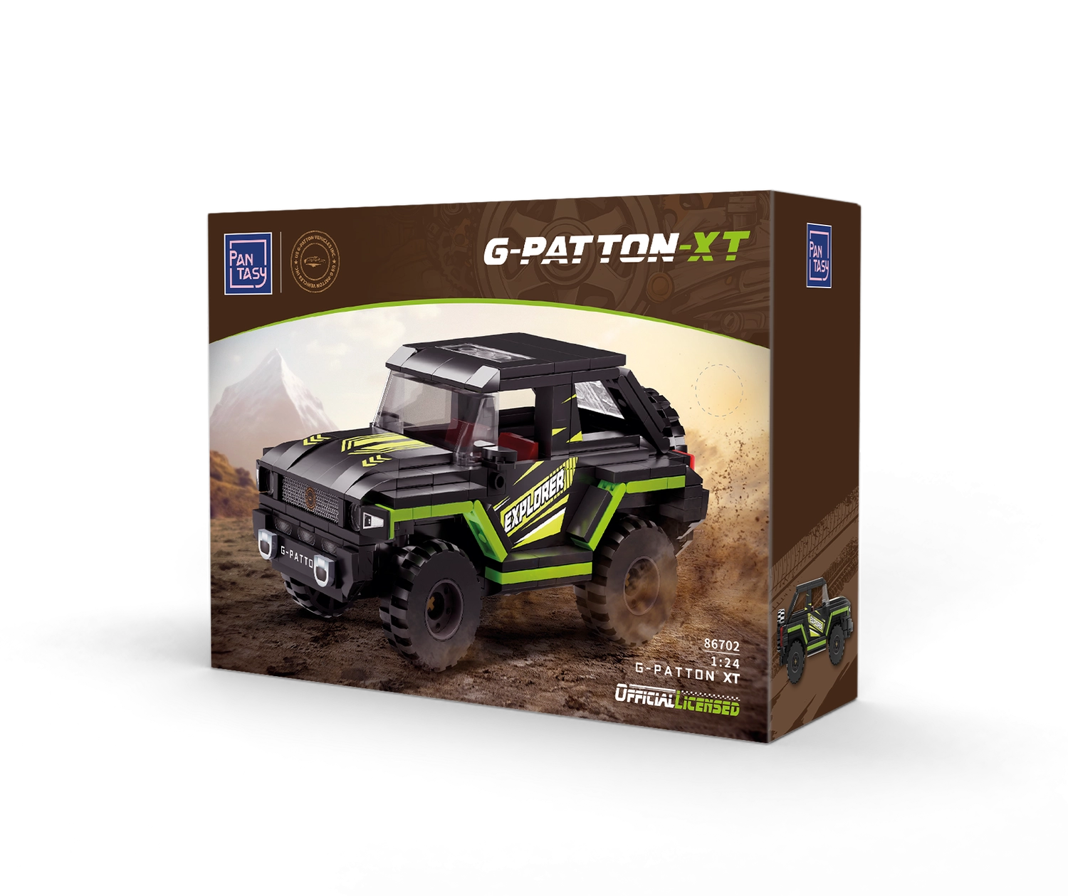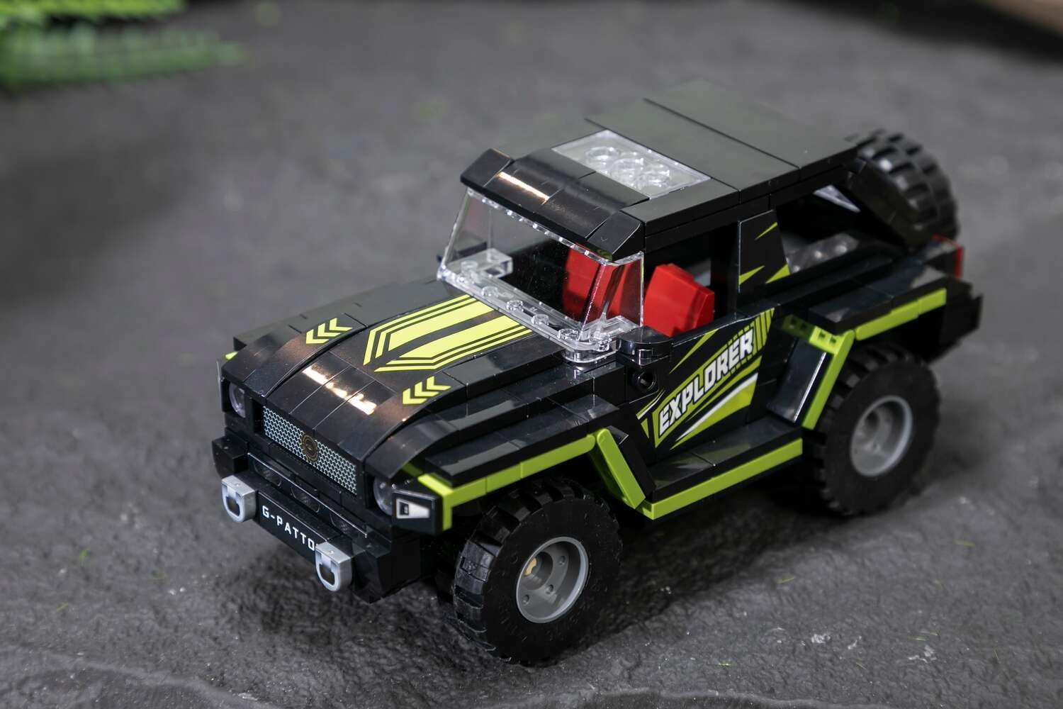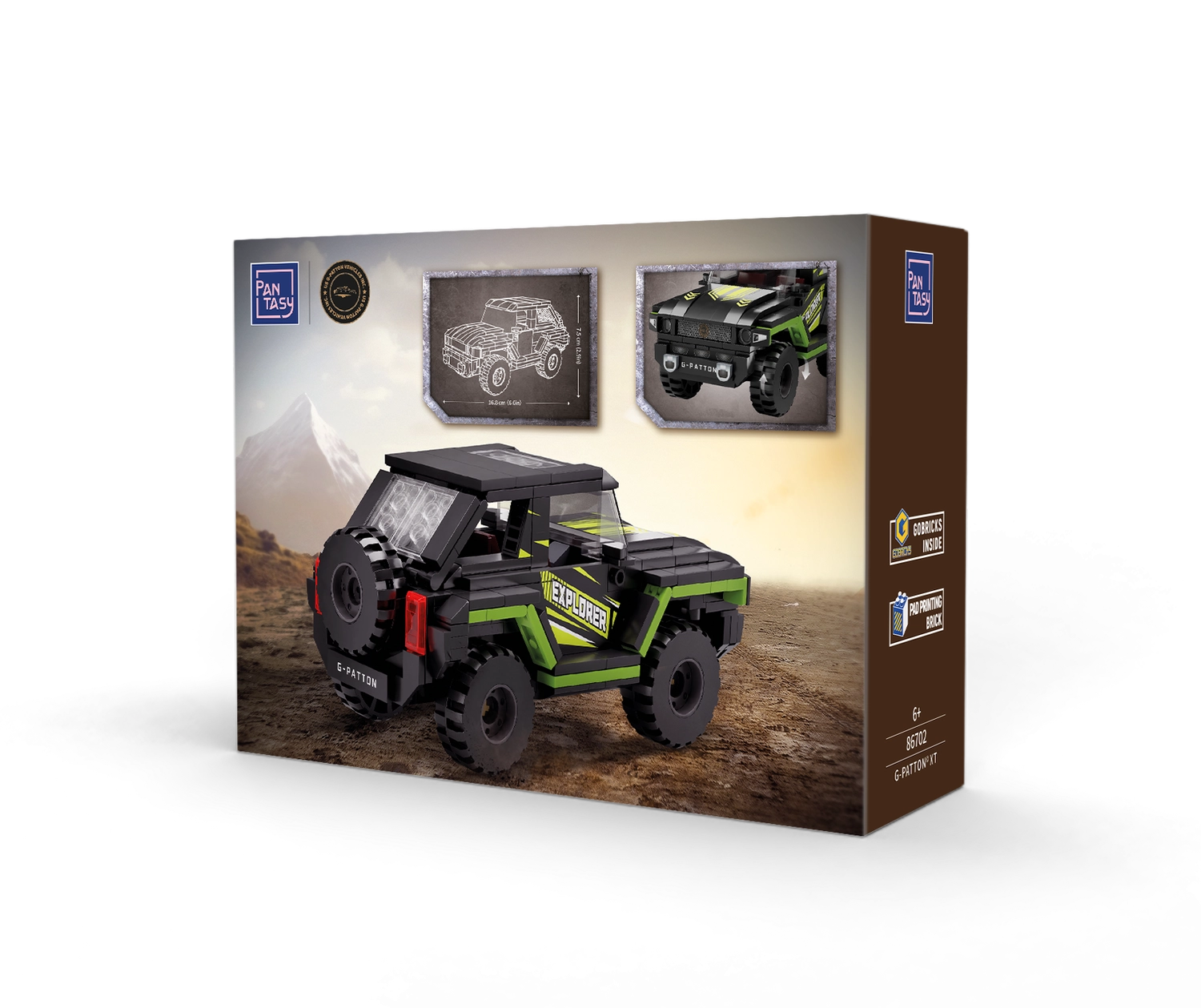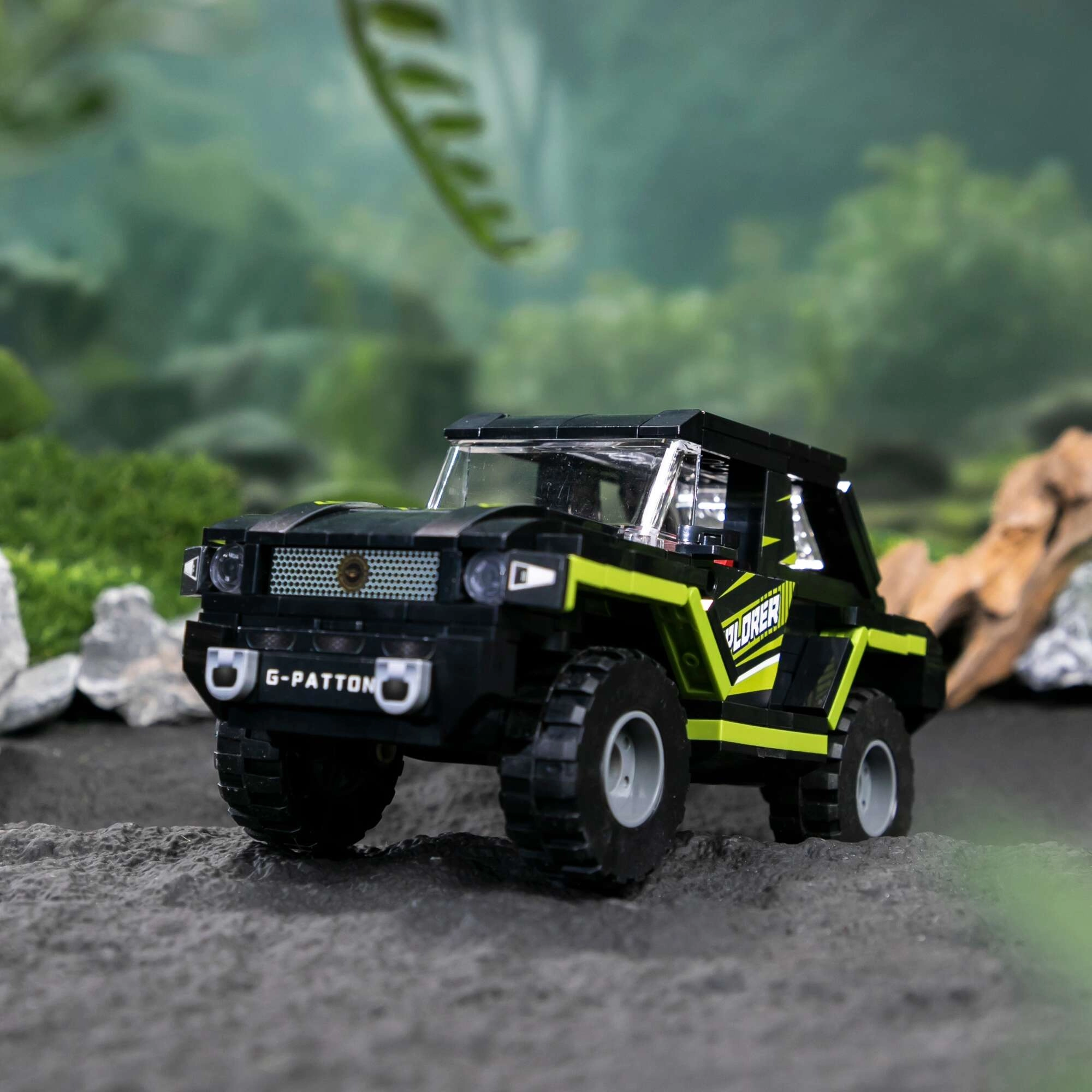 Dit stijlvolle offroadmodel in een zwart-limoenkleurige combinatie overtuigt met realistische details: forse banden, heldere “ramen”, een reservewiel achterop en prints met EXPLORER/G-PATTON. Dankzij precies passende onderdelen van ABS-kunststof is de bouw prettig en het resultaat stabiel en duurzaam.