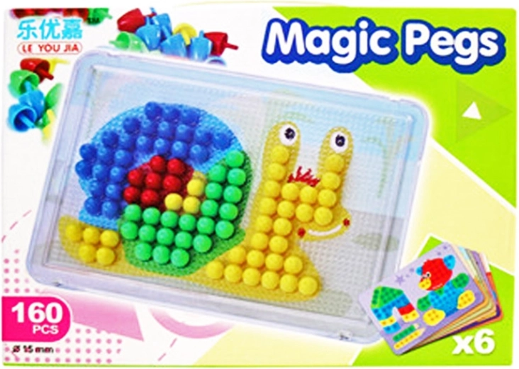 Creatieve mozaïek voor kinderen vanaf 3 jaar ontwikkelt fijne motoriek, geduld en fantasie. Bevat 240 pinnetjes met een diameter van 15 mm, een onderplaat van 30 × 20 cm en 6 voorbeeldkaarten voor eenvoudig leggen.