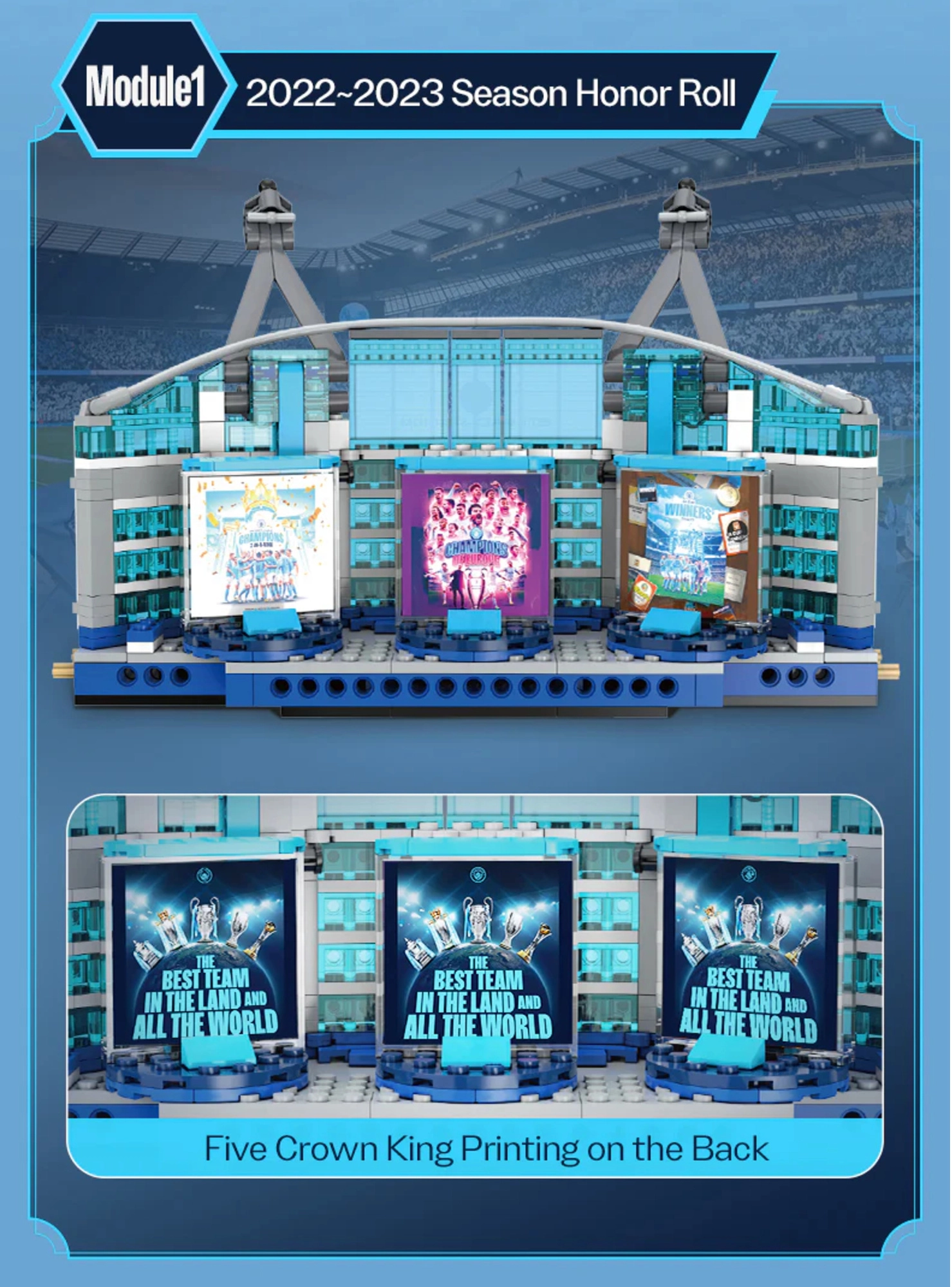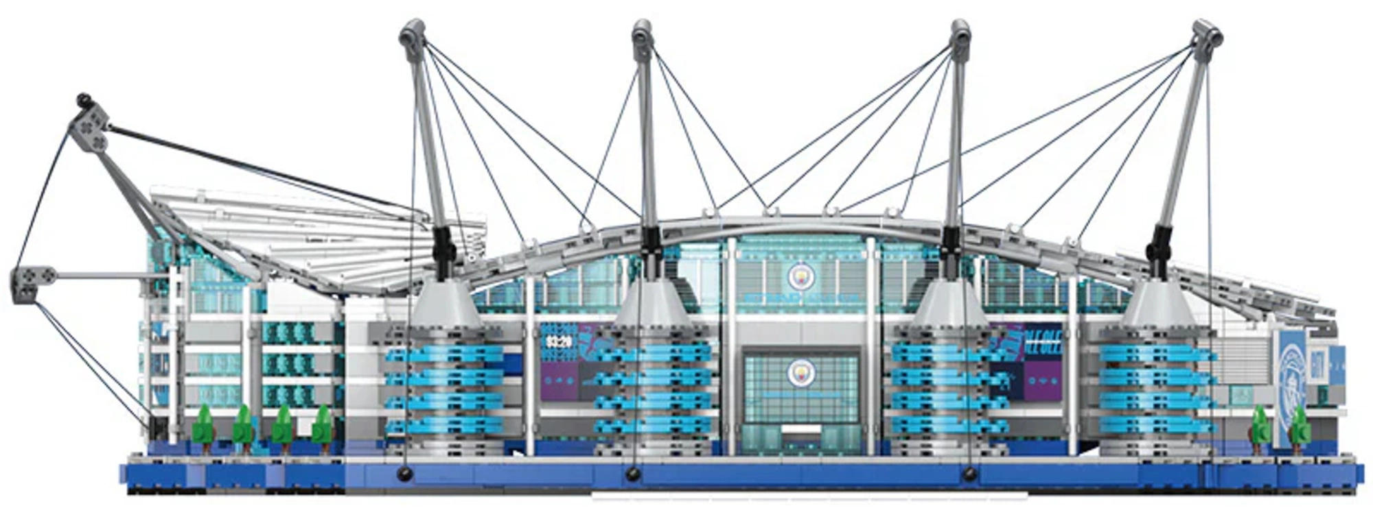 Gegarandeerde authenticiteit van de details van het Etihad Stadium – exacte verhoudingen, tribunes, doelen en de karakteristieke pylonen met kabelsysteem.