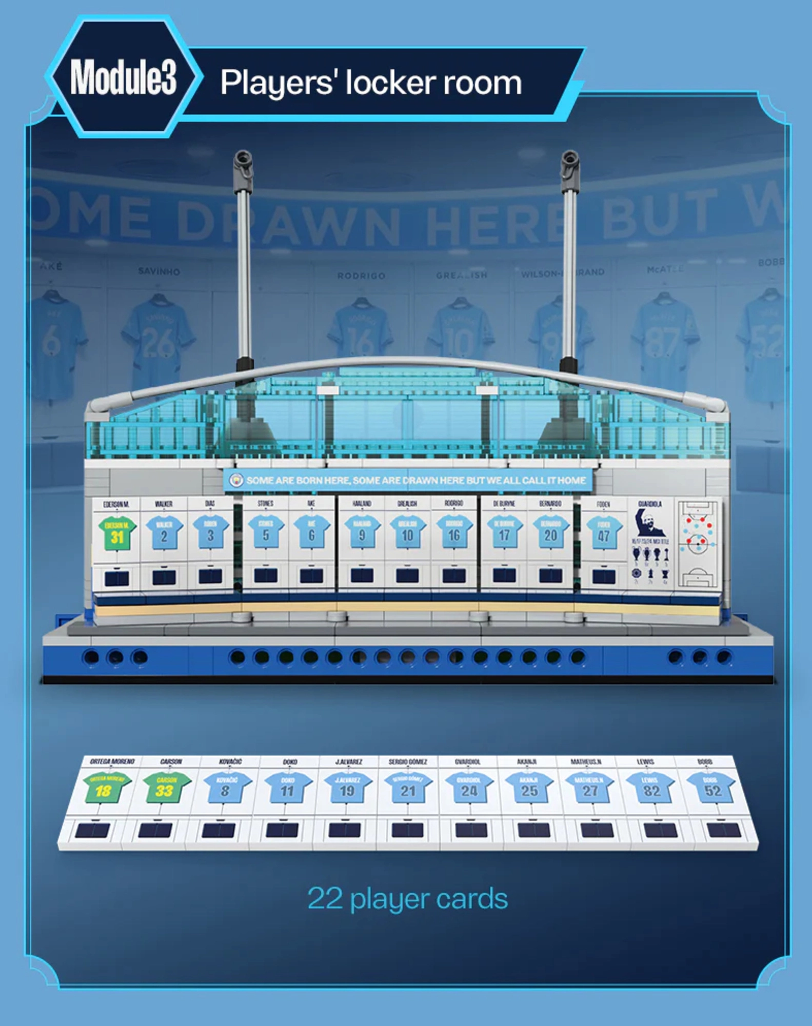 De modulaire opzet laat je apart de kleedkamer en de Hall of Fame bouwen, zodat je het model niet alleen tijdens het bouwen, maar ook bij het bekijken en tentoonstellen kunt waarderen. Dankzij de meegeleverde LED-verlichting (USB) komen de belangrijkste lijnen van het stadion tot hun recht en wordt het model een opvallende decoratie voor elke collectie.