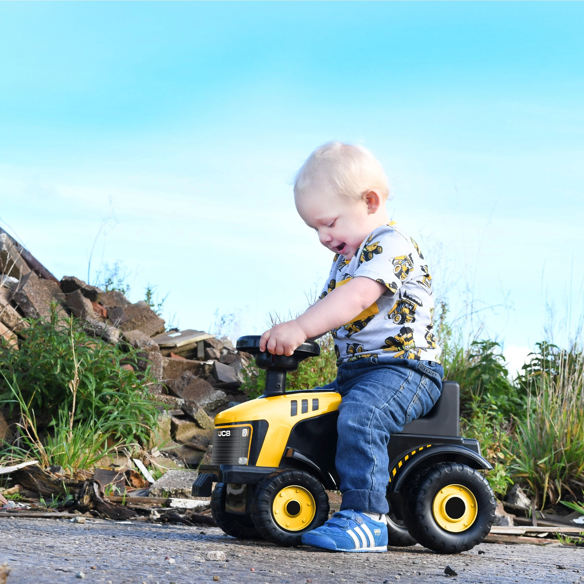 De stijlvolle kinderloopfiets in JCB-kleuren biedt een geweldige combinatie van plezier en vaardigheidsontwikkeling. Kinderen bewegen zich voort met hun voeten, sturen eenvoudig met het stuurwiel en genieten van het realistische ontwerp geïnspireerd op bouwmachines.