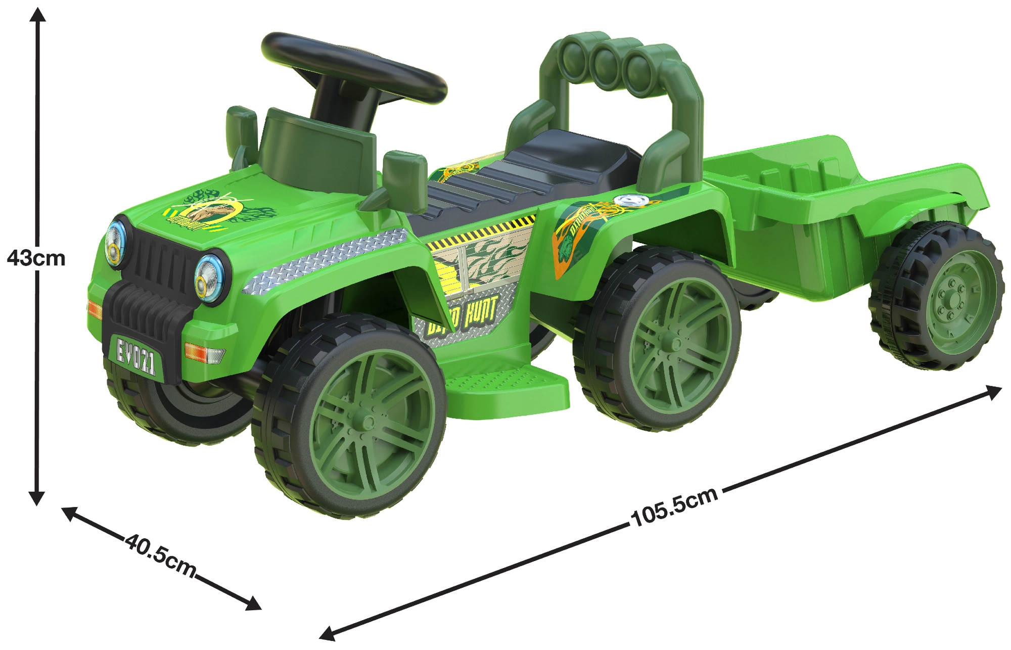EVO loopfiets voor kinderen met afneembare aanhanger Jurassic groen terreinwagentje