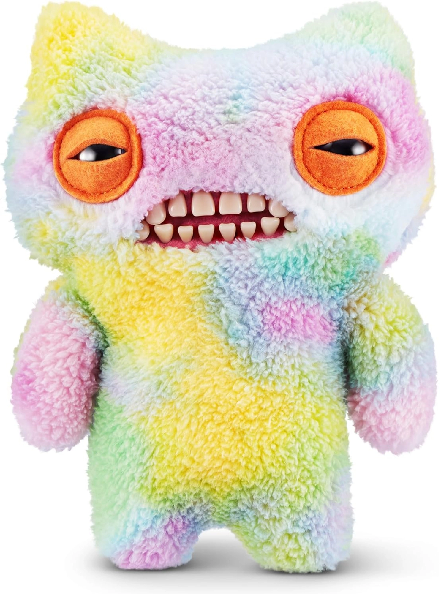 De FUGGLER Munch Munch knuffel uit de serie Laboratory Misfits Monster is een echte designcuriositeit. Hij combineert een pastelkleurige regenboog-sherpavacht, opvallende oogleden en tandjes verborgen in het mondje, waardoor hij grappig en uniek oogt. Hij is licht, prettig om aan te raken en past perfect in je armen.