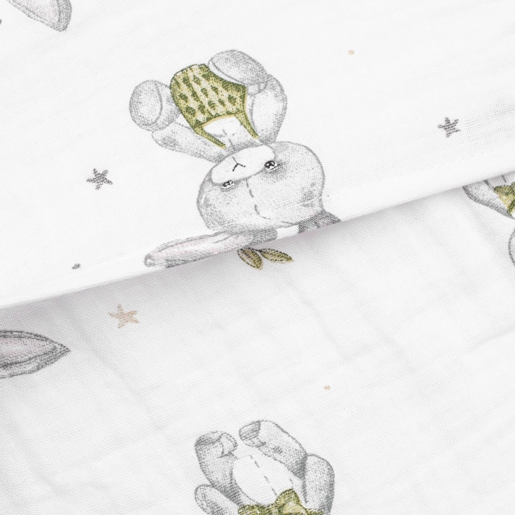 De stijlvolle en functionele hoes voor het kussen–wig NEW BABY is ideaal voor dagelijks gebruik in het ledikant. Mousseline van zuiver katoen is uitzonderlijk zacht, luchtig en prettig aanvoelend, en biedt zo een comfortabele omgeving voor de rustige slaap van je baby. De moderne look met het schattige Bunny-motief past mooi in elke kinderkamer.