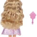 Aurora heeft zacht, vol en golvend blond haar dat je kunt kammen en in verschillende kapsels kunt stylen. Er zit een roze kam bij voor makkelijk doorkammen.
