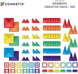 De CONNETIX Rainbow Creative Pack biedt kinderen een speelse manier om geometrie, balans en de principes van magnetisme te ontdekken. Gekleurde, transparante onderdelen in diverse vormen klikken stevig vast dankzij de sterke magneten en maken het bouwen van 2D- en 3D-modellen mogelijk. Ideaal voor thuis, kinderopvang, Montessori en sensorische therapie.