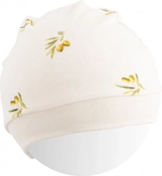 Stijlvolle en zachte kinderpet New Baby Olijven is gemaakt van 100% biologische katoen, uitzonderlijk aangenaam aan de huid, goed ademend en ideaal voor dagelijks gebruik. De olijvenprint geeft een speelse look, terwijl de bredere boord comfort biedt zonder onprettige druk op het hoofdje.