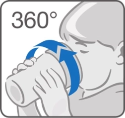 360° rand om te drinken als uit een open beker, en een