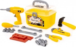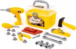 De stevige gele koffer met transparant deksel en sluiting houdt het gereedschap veilig bij elkaar en maakt het gemakkelijk om overal mee naartoe te nemen.
