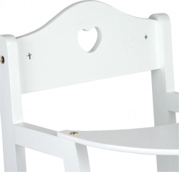 Elegant wit poppenstoeltje met een hartvormige uitsparing dat elke kleine mama zal blij maken. Biedt een stabiele constructie, hoogwaardige afwerking en is ideaal voor actief spel en de ontwikkeling van sociale vaardigheden.