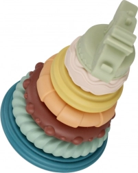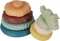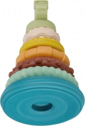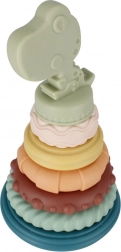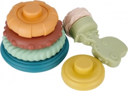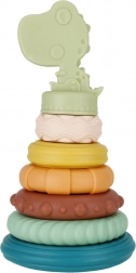De BAB BAM stapelpyramide met dinosaurus is een ideale sensorische speelgoed voor baby’s en peuters. Gekleurde ringen met verschillende oppervlakken (groeven, bobbels, golfjes) nodigen uit tot ontdekken, kauwen en stapelen op de middenpen. Het kind traint spelenderwijs de greep, het sorteren op grootte en de coördinatie.