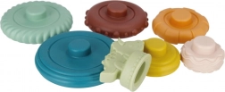 Elke ring heeft een ander oppervlak – groeven, bobbels en golfjes. Stimuleert zintuiglijke waarneming en natuurlijk ontdekken met vingers en mond.