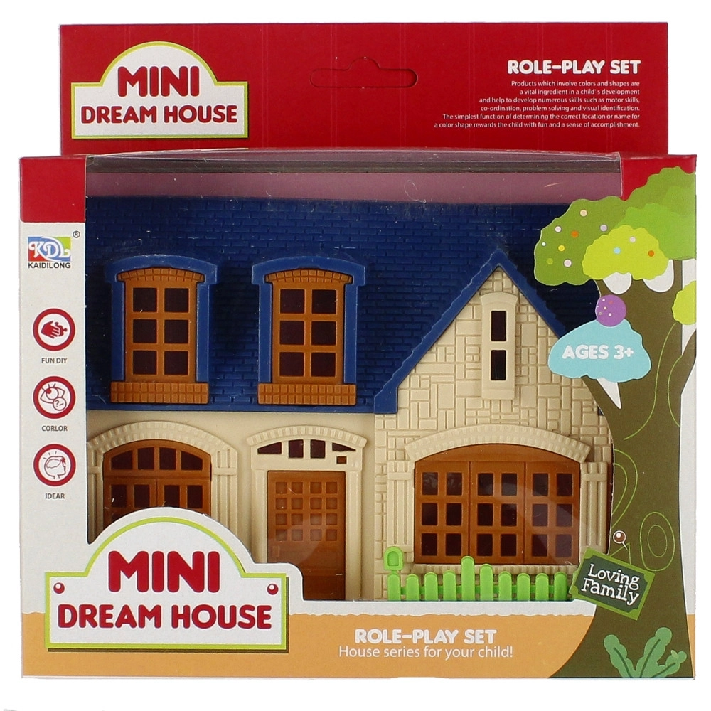 De verpakking bevat een huisje, een kleine pop en meubels voor de slaapkamer en badkamer, zodat het spelen meteen kan beginnen.