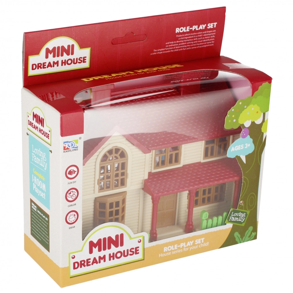 Dit stijlvolle mini-poppenhuis maakt van elk spel een creatief avontuur. Dankzij de open achterkant hebben kinderen gemakkelijk toegang tot alle kamers en kunnen ze het interieur vrij inrichten. De set bevat meubels voor slaapkamer en badkamer en ook een kleine pop, zodat ze direct na het uitpakken kunnen spelen.