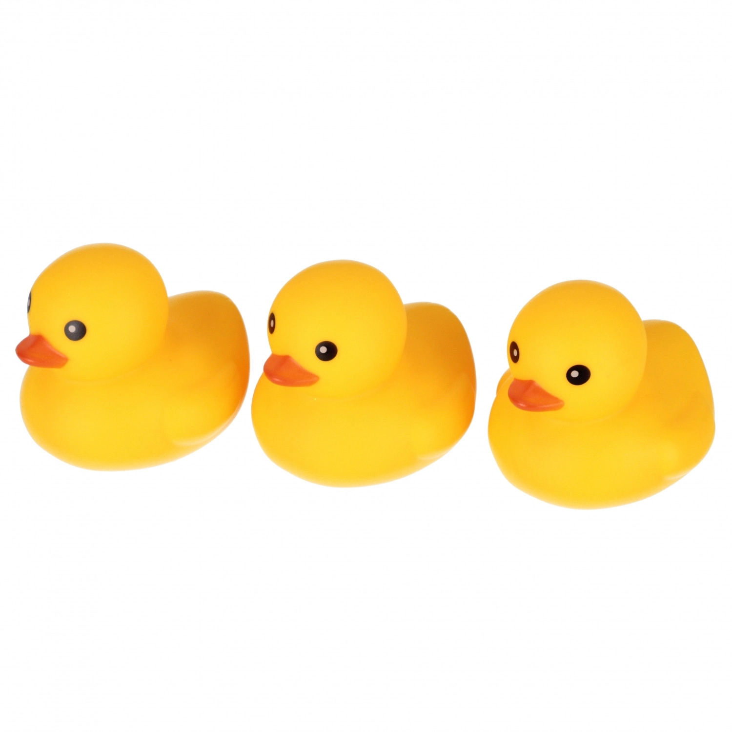 Elk eendje heeft een opvallende gele kleur en een oranje snavel, waardoor kinderen ze goed in het water kunnen zien. De set bevat 3 stuks, zodat meerdere kinderen tegelijk kunnen spelen of de eendjes kunnen worden afgewisseld.